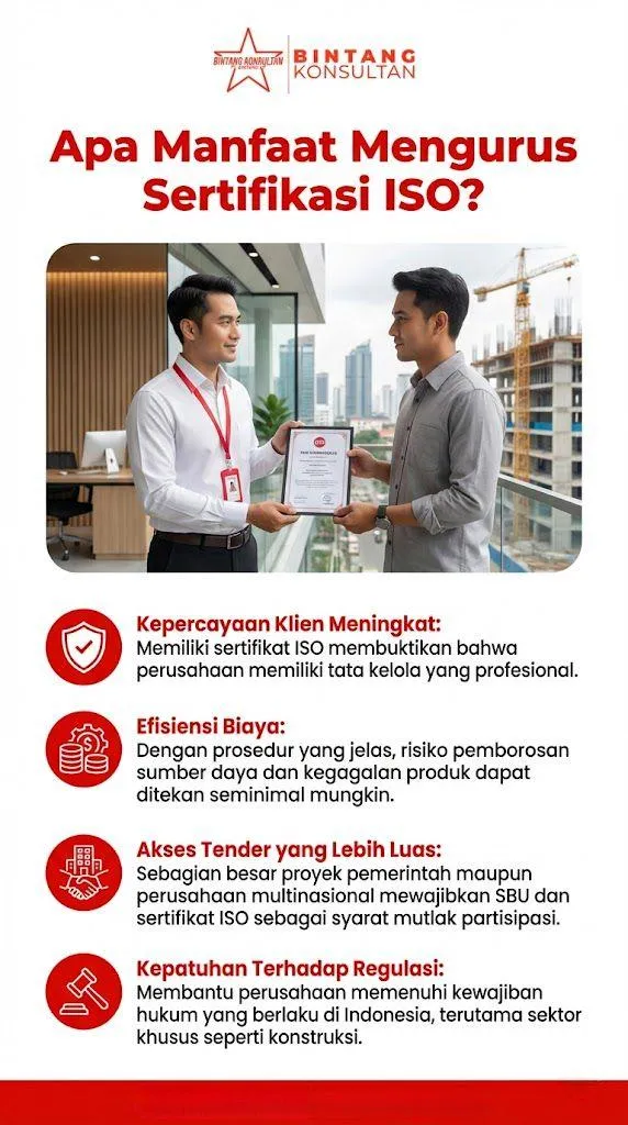 • Akses Tender yang Lebih Luas: Sebagian besar proyek pemerintah maupun perusahaan multinasional mewajibkan SBU dan sertifikat ISO sebagai syarat mutlak partisipasi.